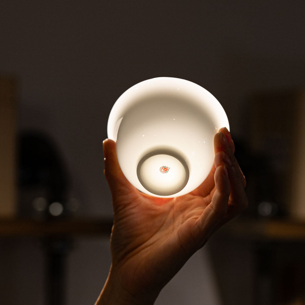 Die leicht durchscheinende Glasur in sanftem Blauweiß erinnert an klares Quellwasser – perfekt für den meditativen Moment einer Teezubereitung. Jede Bewegung beim Aufgießen, Drehen und Abgießen wird zu einem kleinen Ritual, das Achtsamkeit und Gelassenheit schenkt.